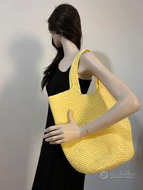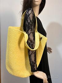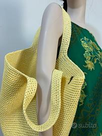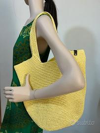 Borsa interamente fatta a mano all'uncinetto con Rafia Ispie, fibra certificata naturale 100%