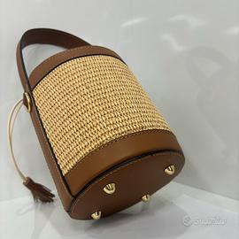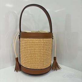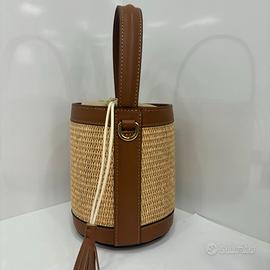 Borsa a secchiello in vera pelle e rafia – Made in Italy