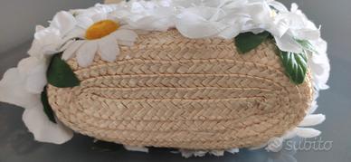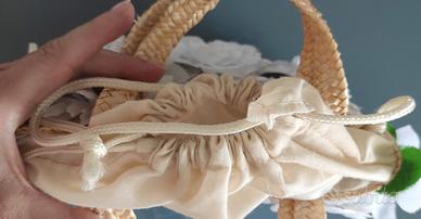 Bellissima borsetta in rafia con fiori applicati.