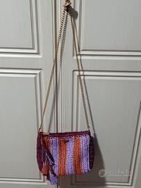 Borsa in rafia Nalí è colorata e divertente, impreziosita da nappe e dotata di una comoda tracolla e di una sicura chiusura con cerniera.
