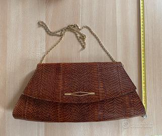 Vendo borsa Vintage in rettile con tracolla a catena di produzione artigianale appartenuta a mia madre. Prodotta negli anni 70 dalla Pelletteria Barbara , artigiani pellettieri a Milano che lavoravano anche per marchi famosi come “ i Santi”. Condizioni come da foto.