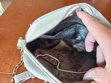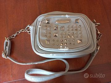 Borsa in similpelle color grigio chiaro avorio Lydc London con tracolla . Dimensioni 20 x 15 cm.