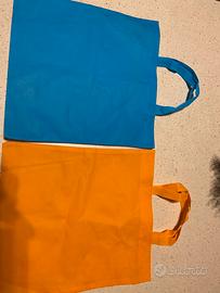 Borsa in Stoffa di vari colori : da personalizzare oppure da dare in omaggio per varie attività Arancione , Azzurro , Rosso, Verde , Giallo dalle dimensioni: L. 37cm. H 39cm. Al costo di 20 centesimi ciascuna nelle confezioni da 100 - 50 - 25 pezzi