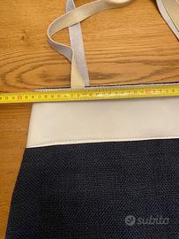 Borsa in tela di cotone blu NUOVA blu esterna e nera interna senza tasche Misure : Larghezza 38 cm ( sopra ) 42 cm ( alla base ) lunghezza 43 cm