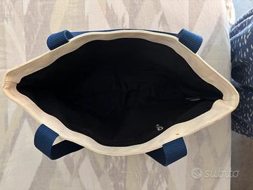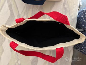 Shopper media in tela con manico colorato rosso o blu . In buone condizioni.10 euro ciascuna