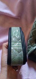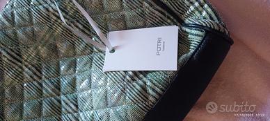 Borsa grande in tessuto con paillettes, manico a spalla incluso. Colori: verde / nero Marca Potri Fashion Nuova con cartellino