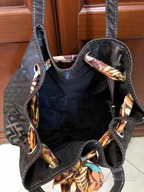 Borsa praticamente nuova in tessuto marrone richiudibile con foulard, molto capiente e di grandi dimensioni