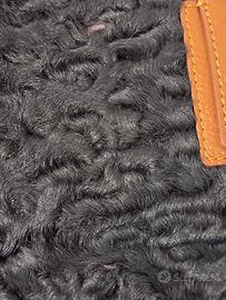 Borsa marrone in vera pelle, con vera pelliccia nera di visone.