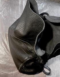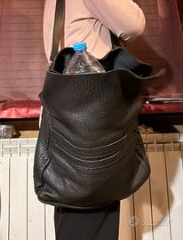 Borsa con manico e tracolla e manico in vera pelle , colore nera , fatta da bread&butter in vera pelle morbida lavorazione artigianale fatti a mano da bread&butter sono modelli Unici.