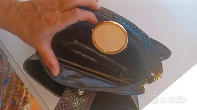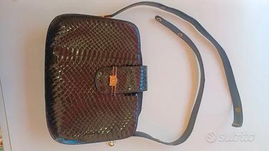 Borsa di vera pelle di pitone vintage in ottimo stato con 3 scomparti, specchio interno e tracolla regolabile. #borsa #pitone #vintage #nera