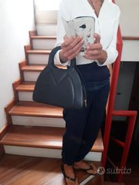 Borsa in vera pelle, usata una volta per un matrimonio. Misure: base 31,5 cm. x altezza 32 cm x spessore alla base 10 cm