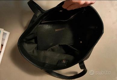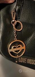 Borsa in vera pelle martellata nera + portachiavi Love Moschino, dotata di busta interna portadocumenti chiusa con cerniera, tasca interna chiusa con zip e seconda tasca aperta, chiusura con bottone magnetico, molto capiente. Interno perfetto, esterno complessivamente in ottime condizioni.