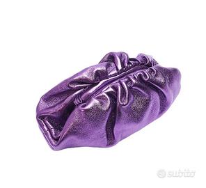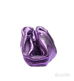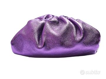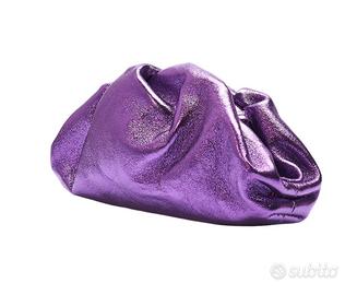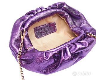 Borsa artigianale realizzata in vera pelle e 100% Made in Italy Pochette in vera pelle di vitello laminata chiusura a scatto tracolla in metallo staccabile color oro dimensioni 23x6x11 (cm) colore borsa: Viola Laminato
