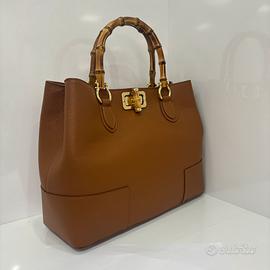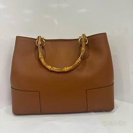 Borsa artigianale in vera pelle martellata – con manici in bamboo naturale