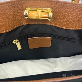 L’interno è ampio e ben organizzato, con doppio scomparto e tasca centrale con zip. I dettagli in metallo e la chiusura in bamboo naturale le danno un tocco distintivo e contemporaneo. I manici in autentico bamboo esaltano la sua originalità e il legame con la natura, mentre la tracolla removibile offre versatilità: portala a mano o a spalla, come preferisci!