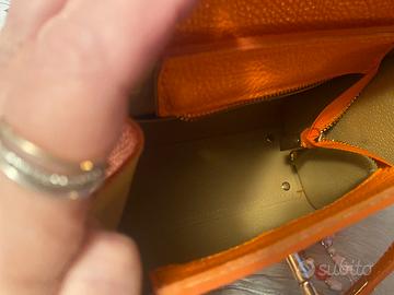Borsa in vera pelle color zucca ( e’ un arancio piu spento rispetto alle foto) praticamente nuova e priva di difetti. Dotata di tracolla. Misura circa 20x20 manico escluso. Hardware dorato. Ritiro presso la mia abitazione di Milano zona CityLife.