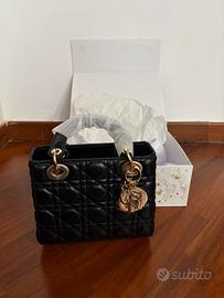 Borsa in vera pelle, modello Lady Dior misura piccola con tracolla. Nuova, con la sua scatola e dust bag. Possibile consegna a mano su Roma. Se interessati contattatemi in privato. - Materiale: vera pelle - Colore: nero - Dettagli trapuntati iconici. - Hardware dorato. - Charm Dior. - Tracolla rimovibile.