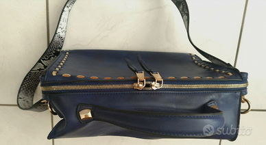 Vendo causa inutilizzo Borsa in Vera Pelle blu , NUOVA, di eccellente Qualità, con tracolla. È dotata di 4 cerniere (2 esterne e 2 interne). Dimensioni : lunghezza 30 cm , altezza (senza manico/tracolla) 24 cm, larghezza 12 cm.