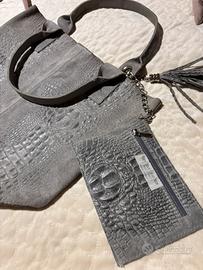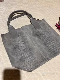 Borsa a sacco in vera pelle scamosciata grigio chiaro motivo rettile sulla pelle, trusse interna . Made in Italy ( Firenze)