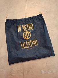 Borsa vintage in vera pelle, colore blu scuro, inseriti in metallo color oro. Marca Di Pietro Valentino. Borsa a mano o spalla. Chiusura a clip. Cerniera interna e taschino senza cerniera sempre all'interno. Semplice ed elegante. Completa di dust bag. Ottime condizioni!