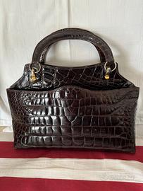 👜 Borsa in Vero Coccodrillo Marrone con 2 Manici