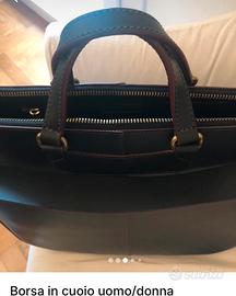 Borsa in vero cuoio spazzolato contracolla cm 46 x38 fondo largo cm21 colore testa di moro