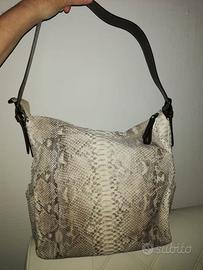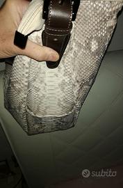 Borsa in vero pitone (non si tratta di pelle stampata "effetto pitone", ma di vero pitone), morbidissima, rifinita in pelle marrone.