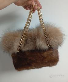 Borsa realizzata in pelliccia lavorazione artigianale con manici in catena colore oro disponibile vari modelli per info contattatemi