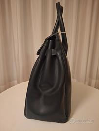 Borsa a mano modello Kelly made in Italy - manifattura "i Santi". La borsa è in vitello spazzolato di colore blu scuro. Le dimensioni sono l.35xh29 p15. La borsa è nuova, mai usata.