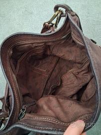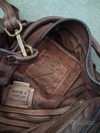 Borsa intrecciata in vera pelle artigianale marca Bayside 84 Dati e descrizione dal sito: Altezza: 36,00 cm Larghezza: 43,00 cm Materiale: vitello tinto in capo color Fango Borsa a sacca intrecciata in pelle di vitello effetto invecchiato, indossabile a spalla e/o con tracolla regolabile e removibile, unico comparto chiuso da zip, tasca interna con zip e sul lato opposto altre due taschine aperte. Fodera in cotone Questo prodotto artigianale è lavorato con la tecnica della “tintura in capo” e rifinito tramite l’applicazione a mano di cere. Condizioni perfette, pari al nuovo.