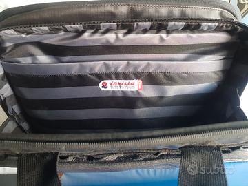 Vendo borsa con manici e tracolla Invicta un ampia tasca con cerniera per documenti/ computer portatile e un ulteriore tasca con cerniera e scomparto per un cambio di abiti, ricca di tasche. Ottimo stato. Colore Nero con interni rigati sul grigio