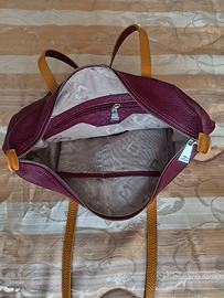 Borsa in vera pelle del brand fiorentino J&C (Jacky Celine) color bordeaux e giallo. In buono stato, con qualche usura nella parte posteriore nella zona del rivetto destro come da foto numero 6.