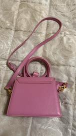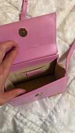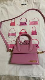 Borsa JACQUEMUS Chiquito media con doppio nodo. Colore rosa . Pelle vera. Tracolla lunga. C’è anche t-shirt da abbinare