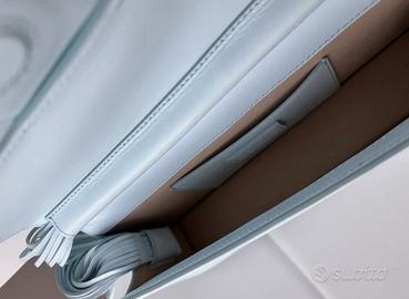 Borsa Jacquemus Le Bambino Long in edizione limitata con tracolla fatta da fili di pelle Colore celeste Misure 27 x 13,5 x 4