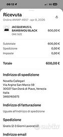 Borsa jacquemus modello IL BAMBIMOU black praticamente nuova, presa in un sito di lusso come si vede dalla ricevuta