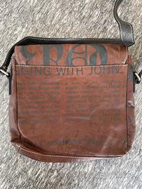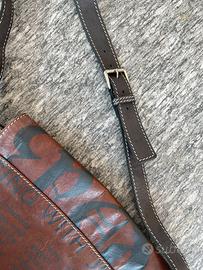 Bellissima borsa a tracolla John Galliano, mai usata. - In pelle di colore marrone. - Chiusura con patta. - Tracolla regolabile in pelle nera.