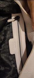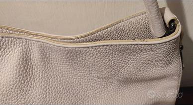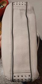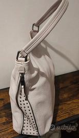 Borsa a spalla hobo in pelle rosa/crema Karl Lagerfeld, con borchie laterali. Ottime condizioni generali, piccolo difetto visibile in ultima foto. Non è presente la dustbag.