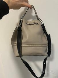 Classico secchiello Karl Lagerfeld, color ghiaccio con tracolla nera e hardware argento. Usato pochissimo, presenta un leggero segno dato da utilizzo sul retro (come in foto).