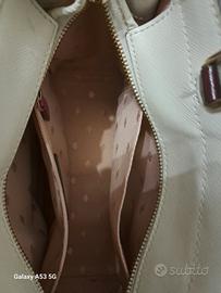 Borsa originale Kate Spade, colore collarino scuro, con manici e tracolla vinaccia e inseri bianchi. Interni integri, pelle pulita ed in ottimo stato