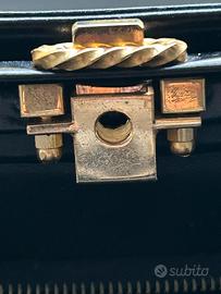 Graziosa e interessante borsa vintage mod. Kelly ottima per amanti del lusso o collezzioniste di borse pregiate.Articolo realizzato in vera pelle con manico rigido ad arco,chiusura e decori in ottone d orato.Praticamente nuova,priva di difetti e in ottimo stato di conservazione.