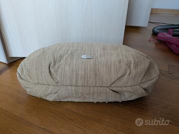 Vendo una borsa Keshia mai utilizzata e ancora nella sua custodia originale. Borsa a spalla o a mano in tessuto tipo juta inserti e manico in camoscio. L'interno è in tessuto tipo raso, fantasia floreale con taschina con zip + due taschine aperte.