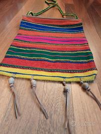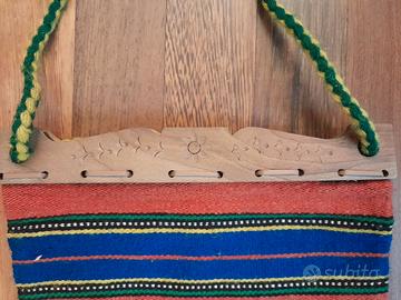 Splendida borsa a tracolla vintage originale degli anni '70, autentico esempio di artigianato tessile (probabile provenienza area Balcanica/Grecia).