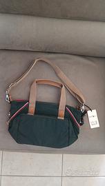borsa a tracolla Kipling nuova mai usata con cartellino, tracolla regolabile e due manici, blu con dettagli fango e rossi
