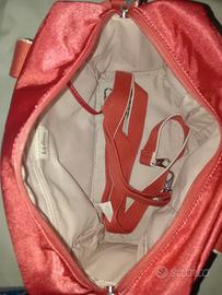 Vendo nuova per inutilizzo mai usata borsa Kipling colore corallo traslucida antimacchia con due tasche davanti e due tasche laterali molto spaziosa è leggera tracolla regolabile