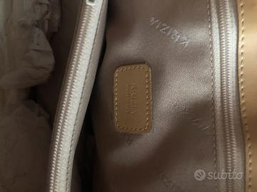 Elegante borsa a spalla firmata Krizia, originale e realizzata in Italia. Un pezzo vintage dal carattere deciso grazie alla lavorazione della pelle effetto coccodrillo in una splendida tonalità azzurro pastello. • Materiale: Pelle stampata con finiture in vacchetta color cuoio. • Interno: Fodera logata integra con tasca interna con zip e placchetta in pelle "Krizia Made in Italy". • Dettagli: Molto capiente e strutturata, ideale per la stagione primaverile ed estiva. • Condizioni: Buone condizioni generali, con normali segni del tempo sulla base e sui manici che ne testimoniano l'autenticità vintage.