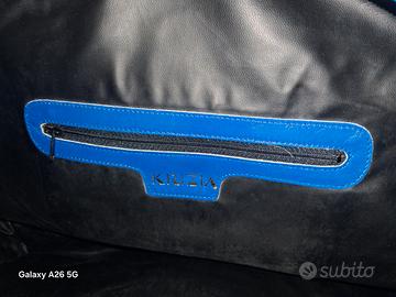 borsa Krizia a mano o a spalla realizzata in una combinazione di pelle scamosciata (suede) e pelle liscia in una vivace tonalità blu elettrico. Ampio scomparto principale con chiusura a zip superiore e doppi manici