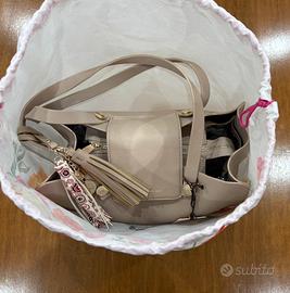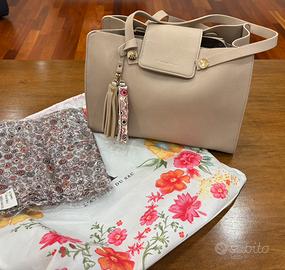 Borsa L'Atelier du sac in ecopelle a tinta unita comoda e capiente. Nuova È possibile indossarla sia a mano che a tracolla. Interno foderato e scomparto interno spazioso con tasche multiuso aperte e con zip. Chiusura con cerniera. Tracolla removibile e regolabile in ecopelle. Foulard abbinato e pompon coordinato. Dimensioni: larghezza 34 cm, altezza 26 cm, profondità 14 cm