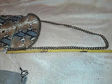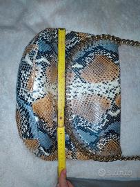 Borsa L'Aura vera pelle ricamata a mano effetto pitone, come nuova.