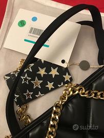 borsa la fille des fleur nera trapuntata catena oro NUOVA CON CARTELLINO