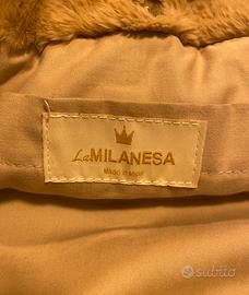Tote La Milanesa in ecopelliccia color cammello con doppio manico a catena piatta in resina color tartaruga. Dimensioni 35x40. Usata pochissimo, nessun difetto (vedi foto).